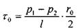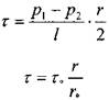 Очевидно, это будут максимальная величина касательных напряжений в отсеке жидкости. Вычислим величину касательных напряжений на расстоянии г от оси трубы.