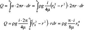 Средняя скорость движения жидкости в ламинарном потоке. Для определения величины средней скорости рассмотрим живое сечение потока жидкости в трубе Затем проведём в сечении потока две концентрические окружности, отстоящие друг от друга на бесконечно малое расстояние dr. Между этими окружностями мы, таким образом, выделили