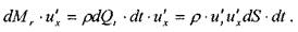 За счёт горизонтальной составляющей скорости пульсации и'х эта масса получит в новом слое жидкости приращение количества движения dM,![]()