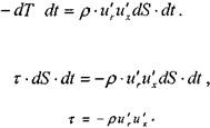 переток жидкости осуществлялся в слой, двигающийся с большей скоростью, то, следовательно, приращение количества движения будет соответствовать импульсу силы dT, направленной в сторону противоположную движению жидкости, т. е. скорости и'х: