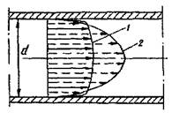 жидкости (вязкость жидкости и размеры сечения определены первичными условиями) характер её движения зависит от скорости. Для турбулентного потока это имеет решающее значение. Так в периферийных слоях жидкости скорости всегда будут минимальными, и режим движения в этих слоях естественно будет