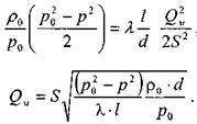 Решая последнее уравнение, получим основные расчётные формулу для определения потерь давления в газопроводе и формулу для определения массового расхода газа в газопроводе.