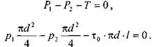Поскольку в начальный момент времени силы трения будут возникать только у стенок трубы, то уравнения равновесия можно запмсать в следующем виде: