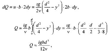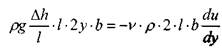Вычислим величину средней скорости потока, для чего найдём величину расхода через щель. Элементарный поток жидкости dQ в тонком слое dy будет равен: