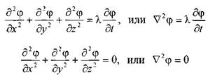 и так называемые уравнения неустановившегося (уравнение Фурье) и установившегося (уравнение Лапласа) движения: