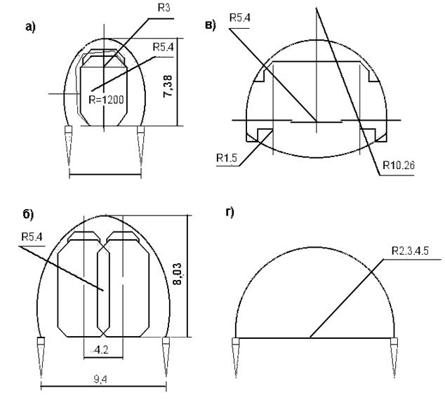 Рис.4.3. Типы поперечного сечения МГК: а) для однопутных железных дорог; б) для двухпутных железных дорог; в) для автодорог габарита Г-8; г) арочные. |