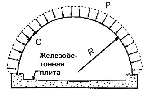 Рис. 4.4. Распределение давления грунта на МГК арочного типа на железобетонной плите |