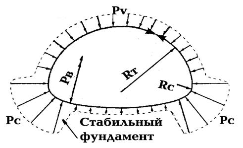 Рис. 4.6. Распределение давления грунта на МГК эллиптического типа |