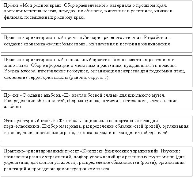 Учебники предлагают детям для выбора различные социально значимые проекты: спектакль для детей детского сада (детского дома), поздравление ветеранам, праздник для родителей и многое другое.