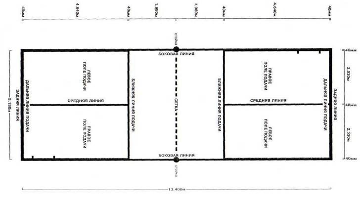 Рис. 1. Разметка корта для парных и одиночных игр.