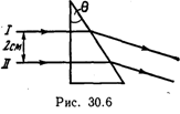 30.6. Два параллельных пучка световых волн I и II падают на стеклянную призму с преломляющим углом θ=30° и после преломления выходят из нее (рис. 30.6). Найти оптическую разность хода Δ световых волн после преломления их призмой.