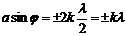где а — ширина щели; φ— угол дифракции; k — номер минимума;