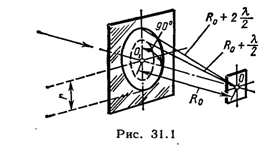 Из рис. 31.1 следует, что расстояние от точки наблюдения O на экране до края отверстия на 2 (λ/2) больше, чем расстояние bmax.