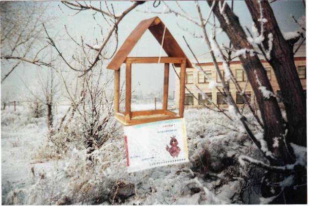 В школе в ноябре объявили акцию «Покормите птиц зимой», которая включала конкурс на лучшую кормушку и агитационную листовку. В классах провели внеклассное мероприятие «Зимующие птицы» и оформили стенд « Покормите птиц зимой» [фото 1]. Через районную газету «Усть - Абаканские известия» обратились к жителям поселка подключиться к акции «Покормите птиц зимой».