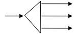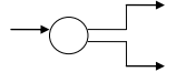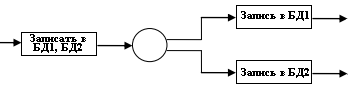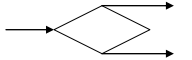 Данный символ используется в информационной системе в том случае, когда необходимо показать, что выполнение основного процесса распределяется на два, или несколько направлений. На схеме информационного процесса обязательно показываются все ветви используемые в информационном процессе. Это ветвление, происходит независимо от каких бы то, ни было условий, происходящих в системе. Если на входе элемента инициируется управляющий сигнал, то он сразу-же появляется на всех его выходах. Например, необходимо показать процесс записи информации в несколько таблиц базы данных одновременно. Описанный словестно процесс будет выглядеть следующим образом: