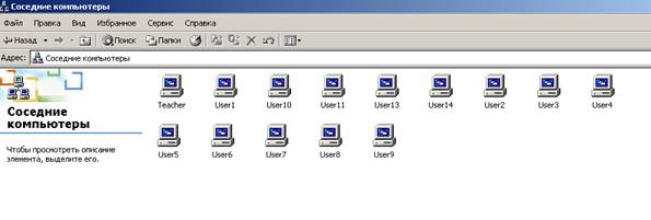 Задание № 8/4 На рисунке представлено рабочее окно «Соседние компьютеры». Укажите последовательность выполнения операций для открытия, данного окна (два способа). Укажите порядок выполнения операций при копирования файла с использованием сетевых технологий с компьютера User13 на компьютер Teacher.