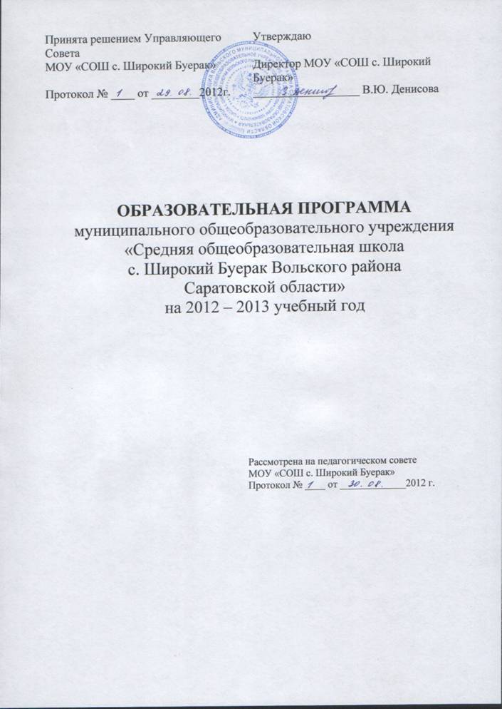 Наименование программы | Образовательная программа для ступеней начального, основного и среднего (полного) общего образования в МОУ «СОШ с. Широкий Буерак» | |