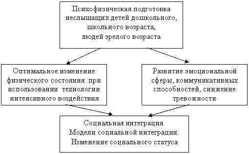 Проведенный в исследовании анализ показателей физического состояния неслышащих детей дошкольного, школьного и зрелого возраста позволил сделать следующие выводы, с учетом которых разрабатывалась технология интенсивного воздействия на физическое состояние лиц с нарушением слуха: