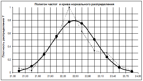 Рис. 1.4.2. Пример построения кривой распределения случайной величины с использованием полигона частот.