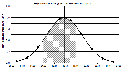Рис. 2.2.1. Определение вероятности попадания значения случайной величины в заданный интервал.