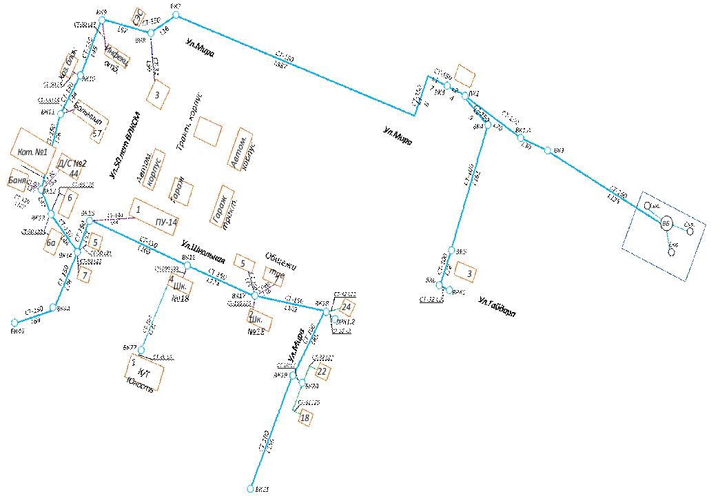 ул. Школьная | ВК15 | ПУ-14 | 100 | подземн. | 64 | |