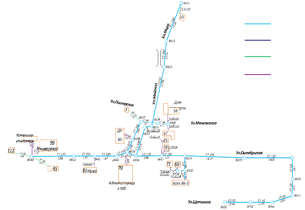 ул. Октябрьская | ВК43 | Котельная УНИВЕРМАГА | 32 | подземн. | 44 | |