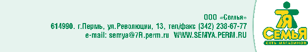 · Предоставление для сети Семья минимальных отпускных цен среди операторов ретейла г. Перми, включая сети Виват, Пятерочка, гипермаркет «Наш» и « Cash and carry» «МЕTRO».