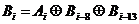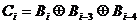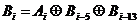 где Ai - двоичная цифра исходного кода, поступающая на i-м такте работы на вход скремблера, Bi - двоичная цифра результирующего кода, полученная на i-м такте работы, Bi-3 и Bi-4 — двоичные цифры результирующего кода, полученные на предыдущих тактах работы скремблера, соответственно на 3 и на 4 такта ранее текущего момента.
