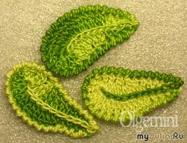 Для украшения и придания краям листиков филигранной рельефной формы их следует обвязывать в последнем ряду маленькими «пико» из трех воздушных петель.