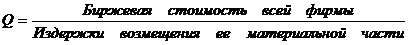 Если дробь больше единицы, то инвестирование выгодно. Причем чем больше, тем выгоднее. Так, рост рыночной (биржевой) оценки домов по отношению к текущей стоимости их строительства стимулирует жилищное строительство, поскольку рыночная цена больше, чем текущие издержки замещения данного дома на новый.