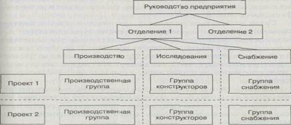 Матричная структура представляет собой попытку использовать преимущества как функционального, так и проектного принципа построения организации и по возможности избежать их недостатков.