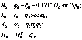 Здесь величины dX0,, dY0, dZ0 представляют собой поправки в координаты центра референц-эллипсоида, наиболее подходящего для данной территории.