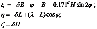 Выражая в явном виде поправки dB, dL, dH , получаем: