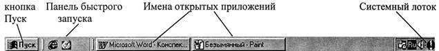 В нижней части Рабочего стола расположена Панель задач (Taskbar) , являющаяся основным средством взаимодействия пользователя с системой.