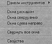 Строка управляющего меню расположена под строкой заголовка окна и включает ряд позиций. Их легко активизировать, установив на надпись позиции курсор мыши и дважды щелкнув левой кнопкой. Активная позиция управляющего меню порождает выпадающее подменю с рядом команд или опций.
