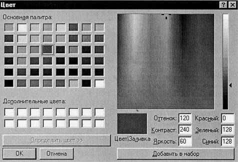 Палитра. Разновидность раскрывающегося списка. Здесь вместо текстовых пунктов применяются цветовые обозначения, значки или другие объекты. Используется в тех случаях, когда текстовое описание пункта недостаточно или, наоборот, излишне, например при выборе цвета. Выбираемый пункт обычно помечается темной рамкой.