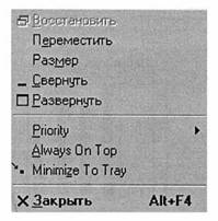 • Свернуть, Minimize - свернуть окно в значок, который будет размещен в панели задач;