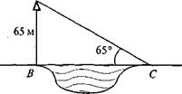 Определить ширину реки, если башня, высота которой 65 м, находится на берегу реки и ее видно из второго берега под углом 65°.