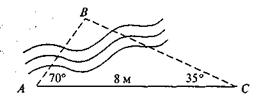 Найти расстояние между двумя недоступными предметами В и С, что находятся на противоположных берегах реки, если АС = 8 м, ∟С = 35°,
