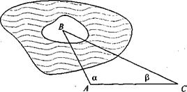 Возможное условие задачи: Найти расстояние от острова В, расположенного на озере к пункту А, который находится на березе, если расстояние АС = 18 м и углы α =100°, β = 50°. (Остров принять за точку.)