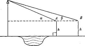 Возможное условие задачи: Из двух точек А и В, расстояние между которыми 50 м, вершину вышки видно под углами α=50° и β = 30°. Найти высоту вышки, если рост человека h = 1,64 м.