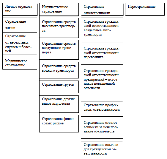На рисунке 1 приведена отраслевая классификация, применяемая для целей лицензирования в России. Отдельным видом страховой деятельности представлено перестрахование.