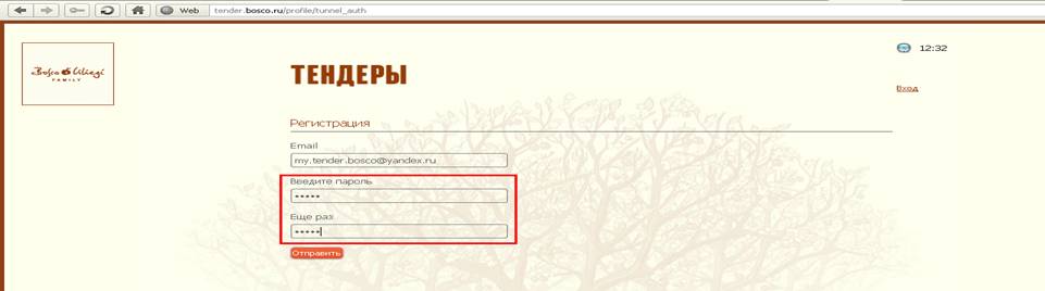 · в поле «Пароль» ввести пароль, указанный при завершении регистрации: