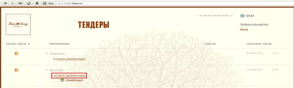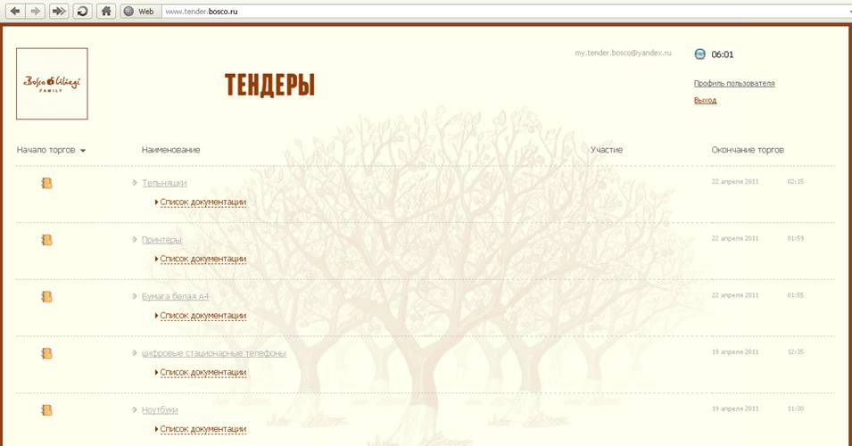 Система – раздел «Тендеры» интернет-сайта группы компаний Bosco di Ciliegi, предназначенный для проведения Тендеров.