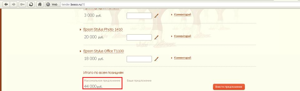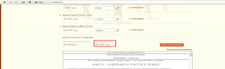 После внесения цены по всем позициям, а также всех необходимых комментариев, следует нажать на кнопку "Внести предложение":