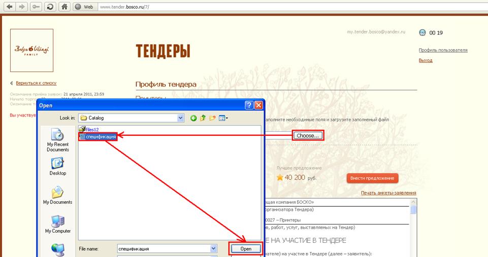 Сохранить заполненный файл спецификации на жестком диске, после чего вложить его в поле "Заполненный файл спецификации Тендера":