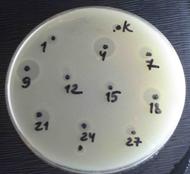 Рис. 6. Антимикробное действие низкомолекулярных (3-6 kDa) пептидных фракций культуры E. faecium L3 по отношению к S. agalactiae (штамм B13)