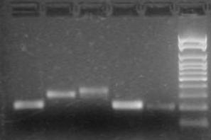 Чтобы подтвердить транскрипцию идентифицированных генов, из клеток культуры E. faecium L3 выделяли тотальную РНК и проводили обратную транскрипцию (ОТ). Анализ выделенной РНК с помощью ОТ-ПЦР, показал присутствие в мРНК фрагментов, соответствующих генам entА, entI, entK, entВ и eniB, что доказывало транскрипцию этих генов в штамме E. faecium L3 (рис. 7).