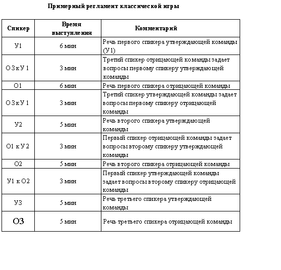 Ход дебатов может осуществляться по следующей схеме: