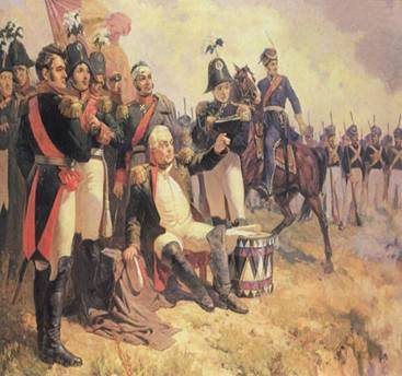 … полдень 7 сентября 1812 года. Седьмая атака французов на Багратионовы флеши отбита. Маршалы обескуражены, Наполеон сильно угнетен и обеспокоен, войска теряют уверенность в своих силах. Несмотря на численное превосходство, французы не могут одолеть русских. Французы в восьмой раз идут в атаку. Силы превосходят наших втрое. Багратион бросает в контратаку все свои резервы. Русские яростно дерутся и не уступают французам. Во время жестокой рукопашной схватки смертельно ранен генерал Багратион. Наши войска оставили флеши после восьмой атаки французов.